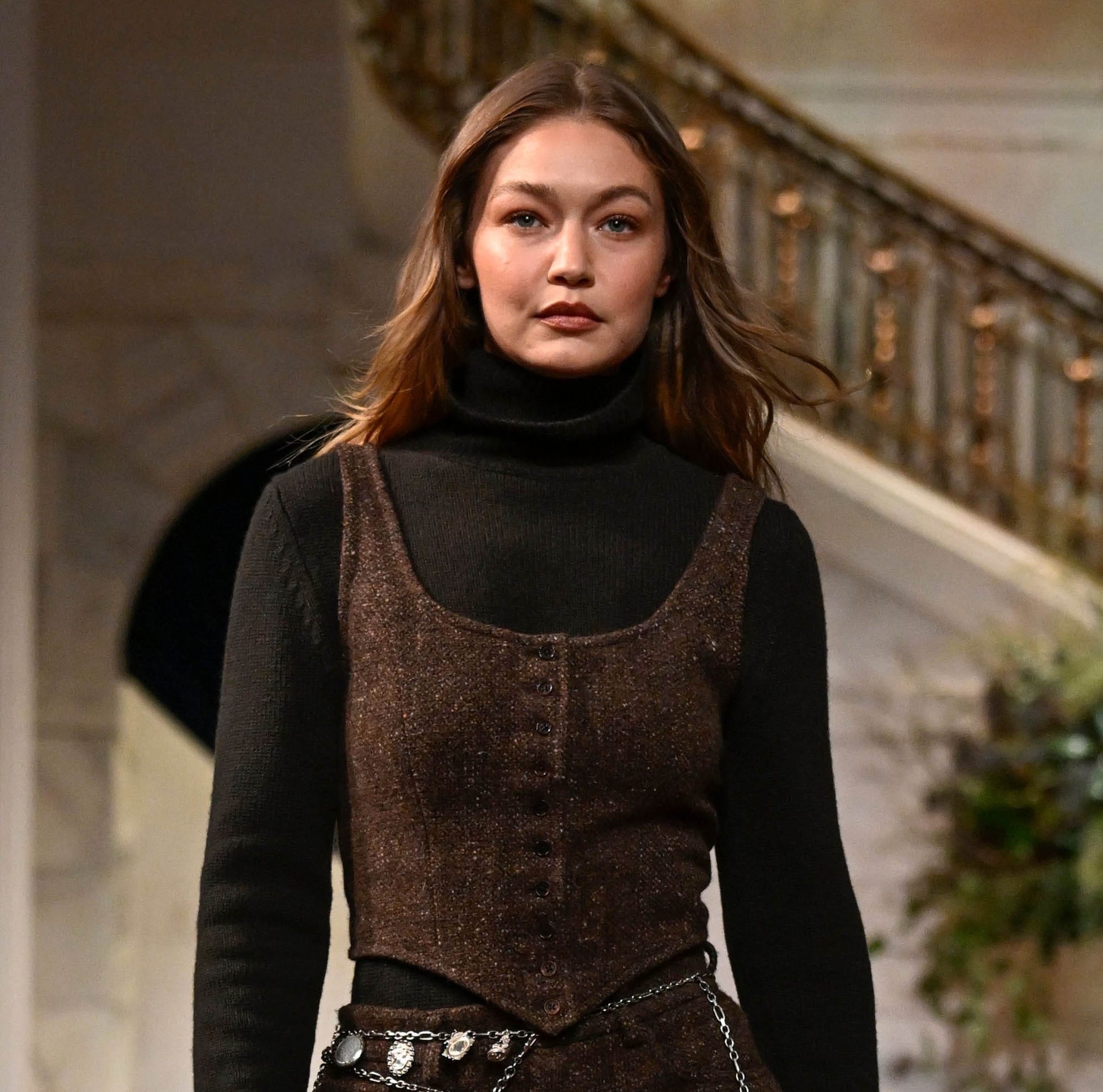 Gigi Hadid on the runway for the Ralph Lauren show, Fall Winter 2026, New York Fashion Week, February 10, 2026